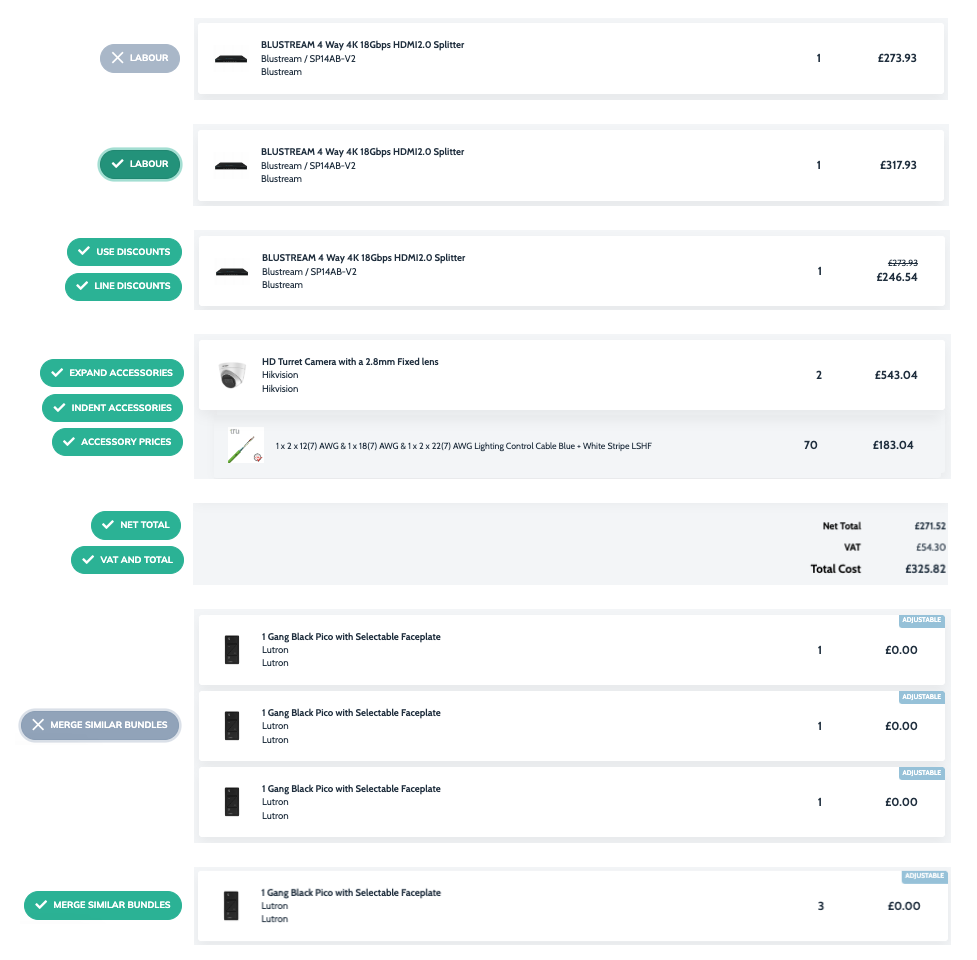 How to show labour in your item list #