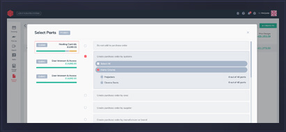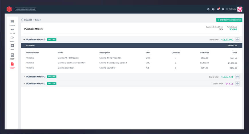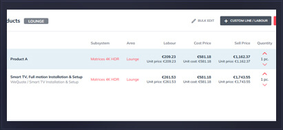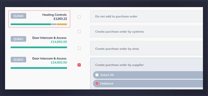 Tailor the purchase order the job by selecting from systems areas or individual products in a quote.