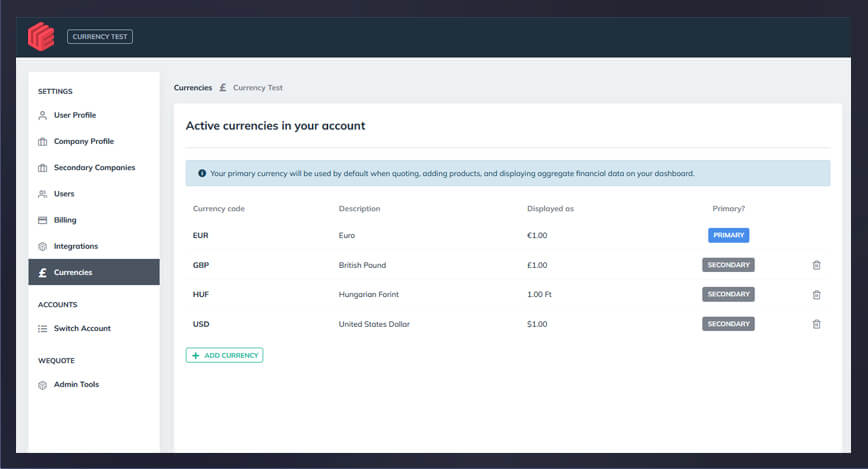 Create quotes in multiple currencies