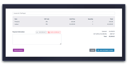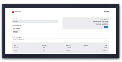 Create an invoice from a quote, call off a % of the quote or individual systems and areas.