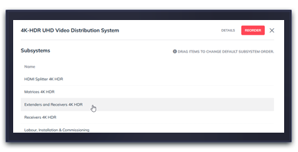 Reorder systems and subsystems in the backend so your quotes are always created in the order you want.