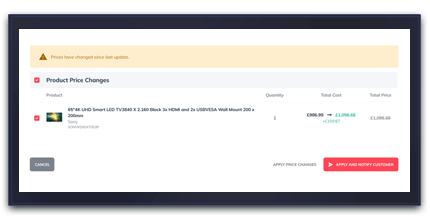 Set a short expiry date and update your proposal with the new prices straight from your catalogues.
